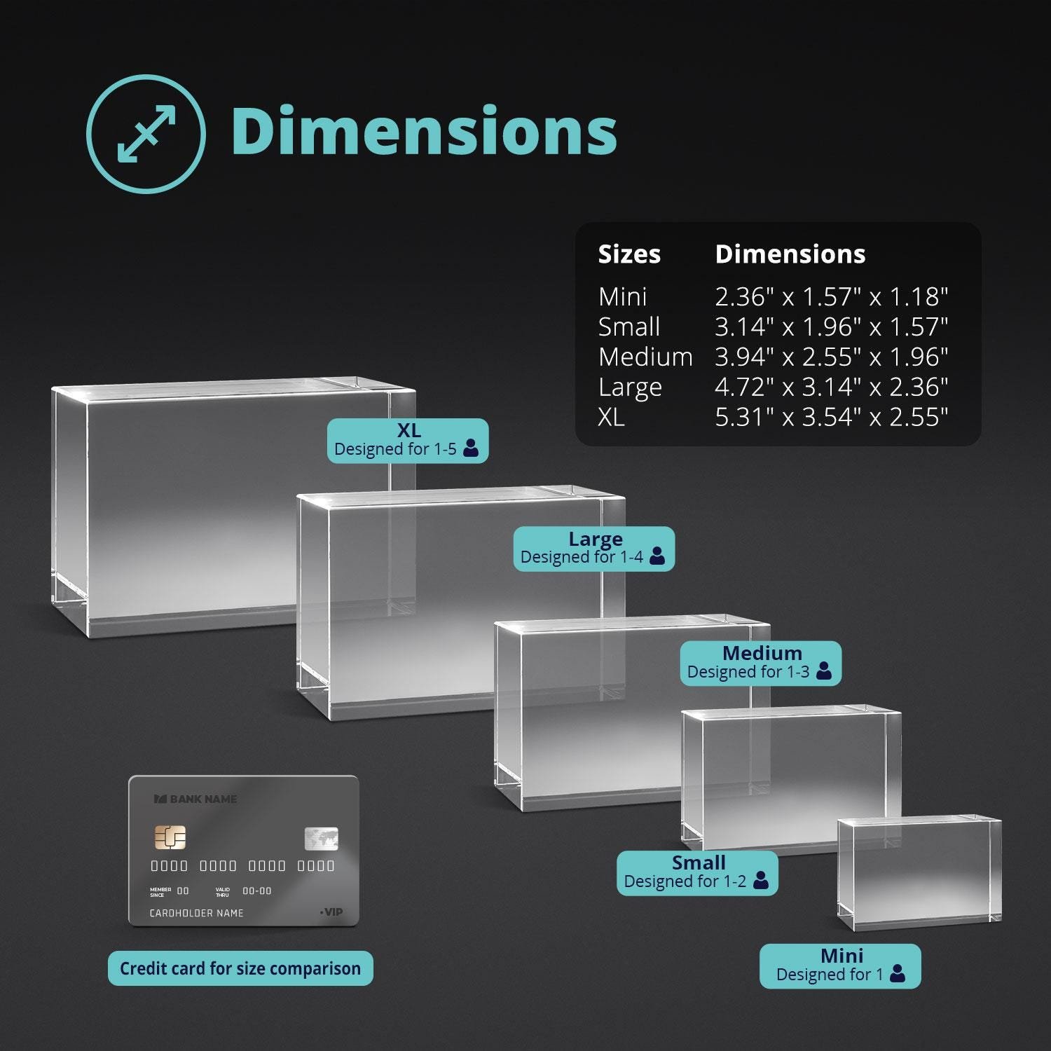 ✓ Small, our most popular model is slightly smaller than a credit card and 2″ thick, and measures 50mm x 80mm x 50mm, or 2″ x 3.14″ x 2″. This crystal can display one or two faces or figures.