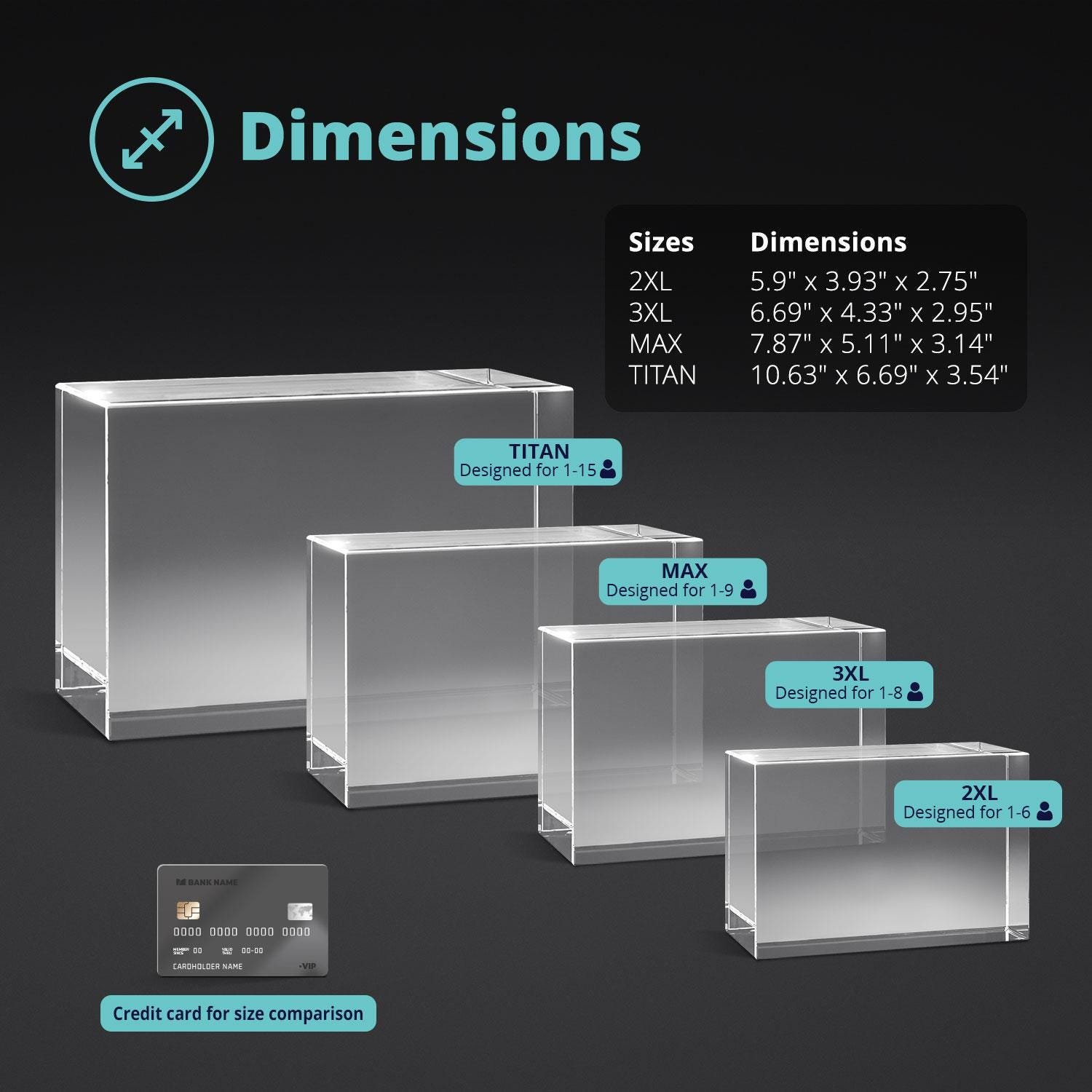 ✓ Titan, our newest crystal size. This crystal measures 170mm x 270mm x 90mm, or 5.75″ x 10.55″ x 3.6″. This crystal can display up to fifteen faces or figures!!
