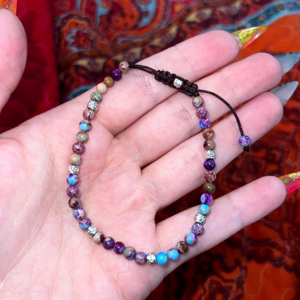 ๐Galaxy Sea Sediment Jasper Bracelet Blue Gemstone Bead Minimalist Bracelet 3MM Tiny Bead Stone Bracelet Adjustable Yoga Crystal Dainty Bracelet Gift for Mom Sister Wife Friends +Gift Pouch๐๐ปโค๏ธ๐๐๐ฟ๐