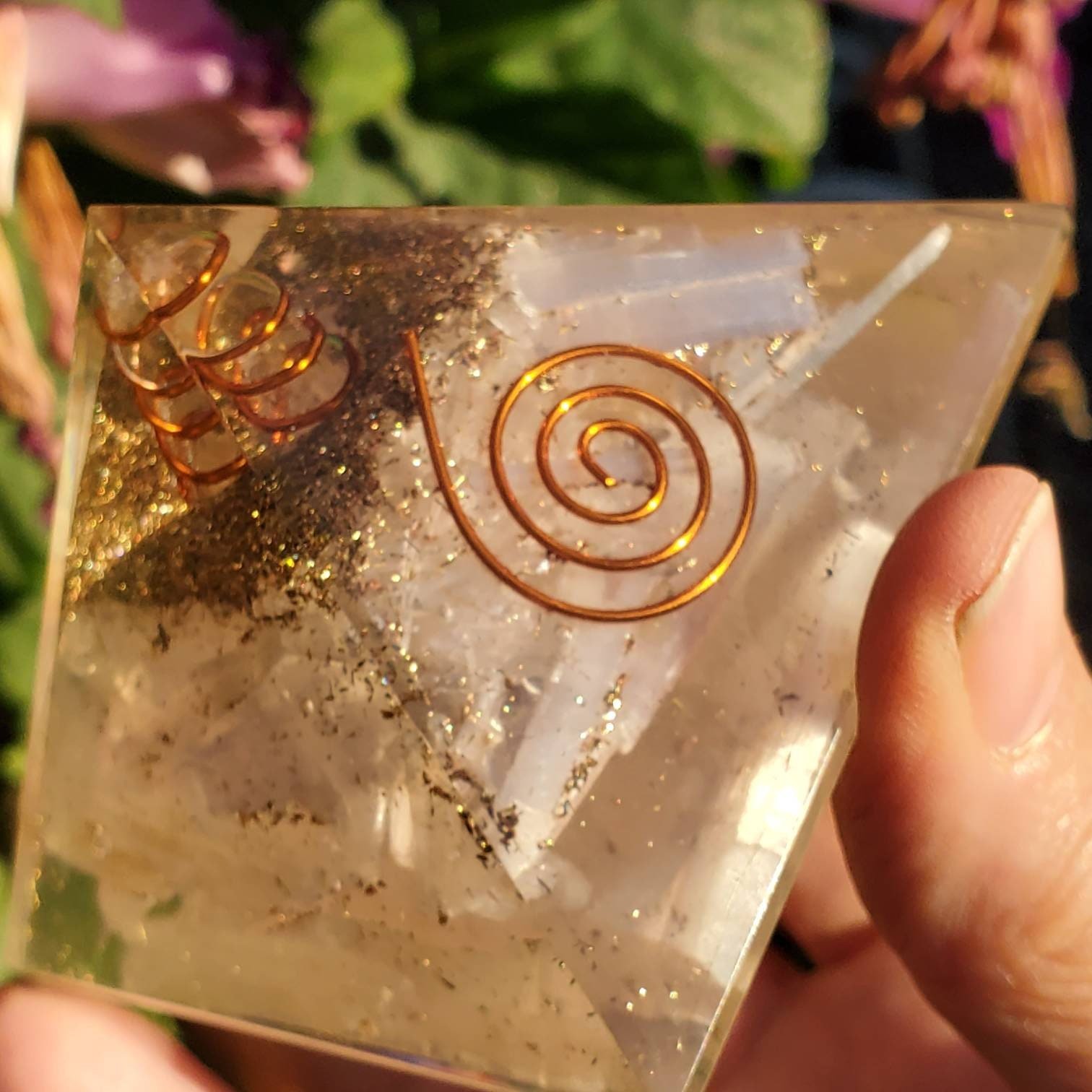 This Large size 2-3/4″ Selenite Orgonite Pyramids. Power Packed with Purpose!