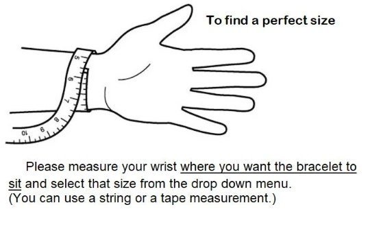 To ensure a perfect fit it is important to accurately measure your wrist circumference. Before placing your order, please measure your wrist using a measuring tape or a piece of string that you can later measure with a ruler. If you are buying the bracelet as a gift and are uncertain about the recipient’s wrist size then we have a helpful guide to assist you. On average, a standard women’s wrist size is approximately 6.5 to 7 inches, while in men’s is around 7 to 7.5 inches.