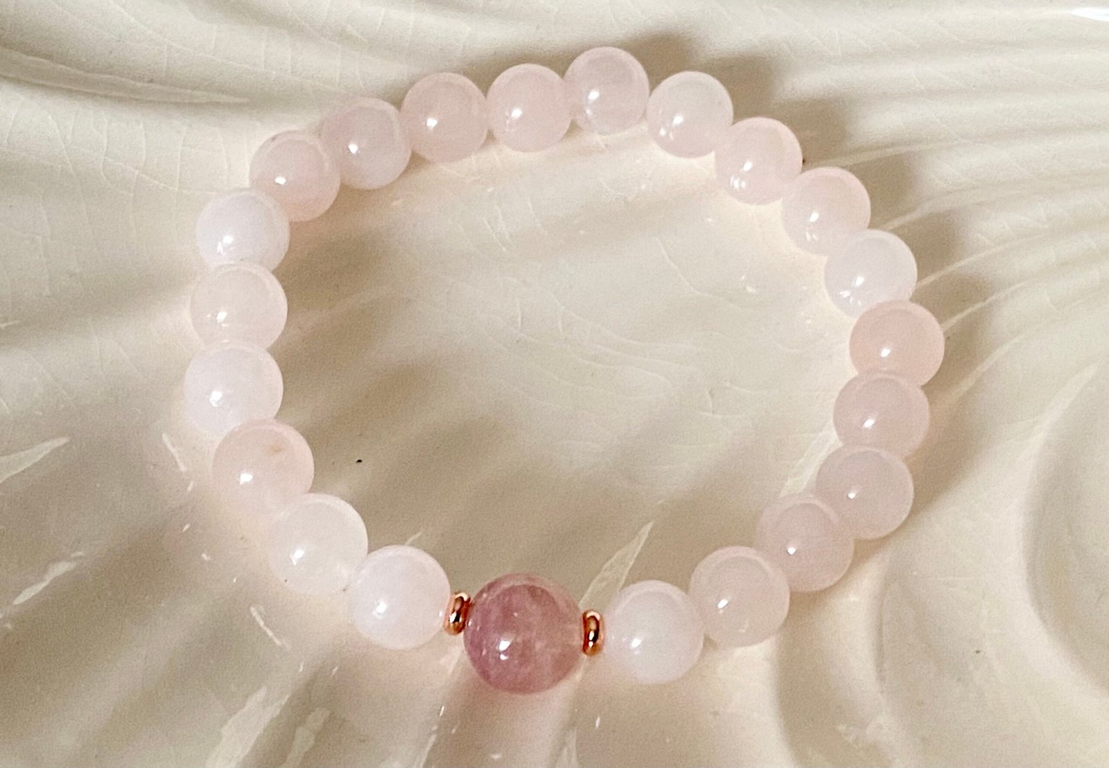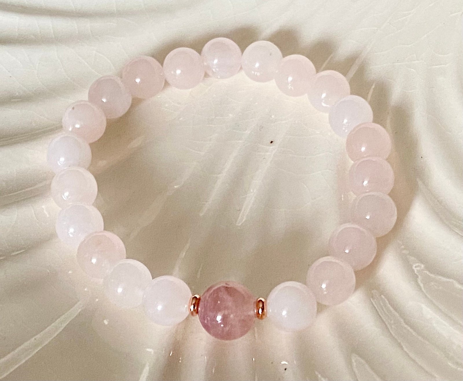 Genuine Gemstones – 8mm Rose Quartz + 10mm Madagascar Rose Quartz