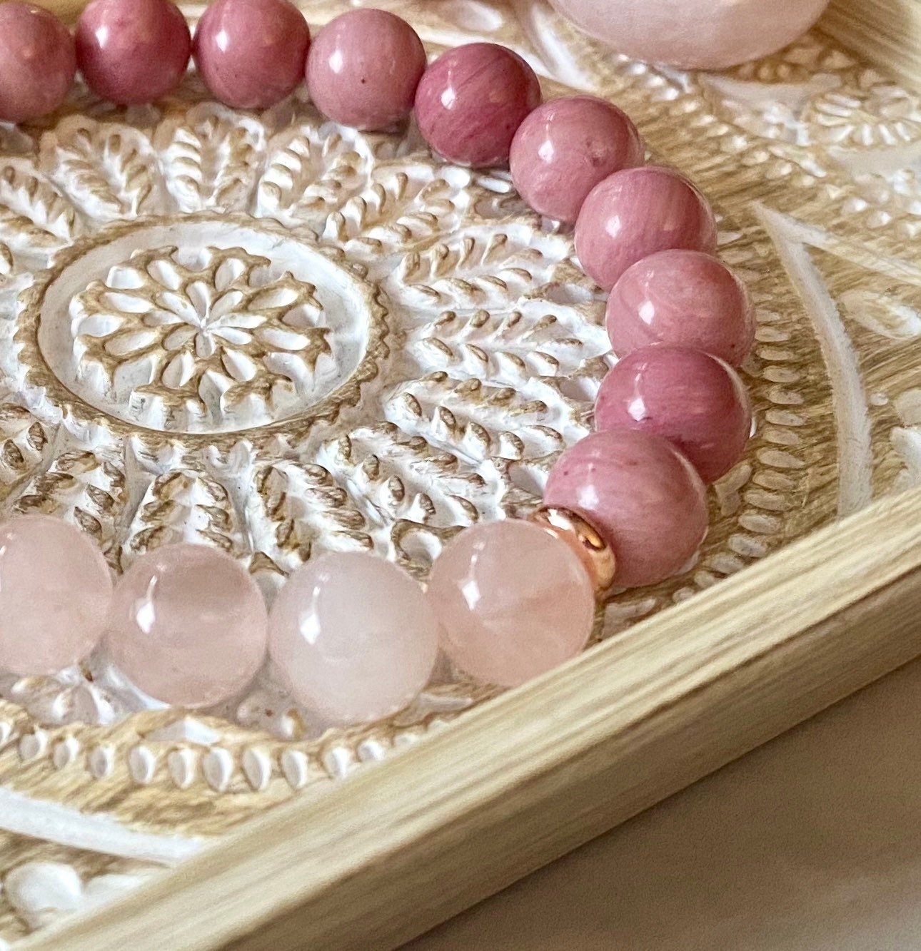 8mm Natural Rose Quartz & Rhodonite beaded Gemstone bracelet, Bead jewelry, Healing Bracelet, 8mm Top Quality Yoga Mala Meditation Bracelet
