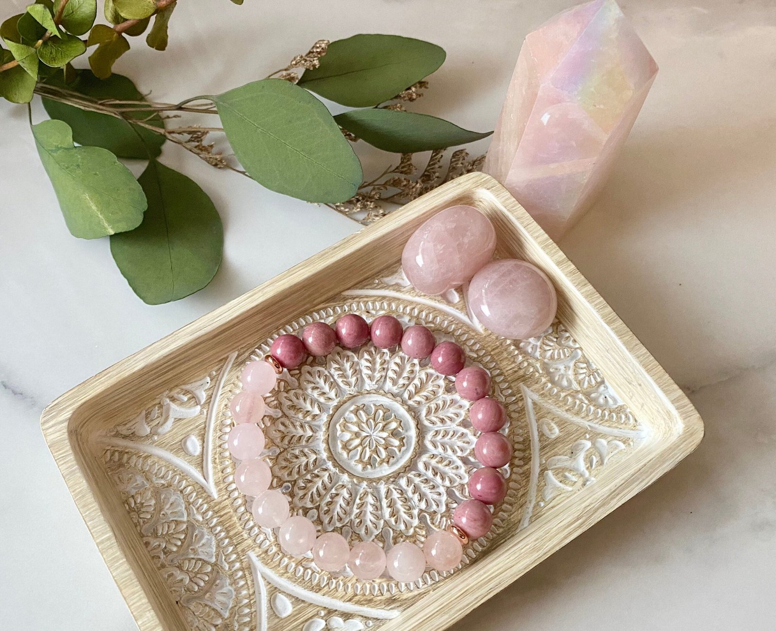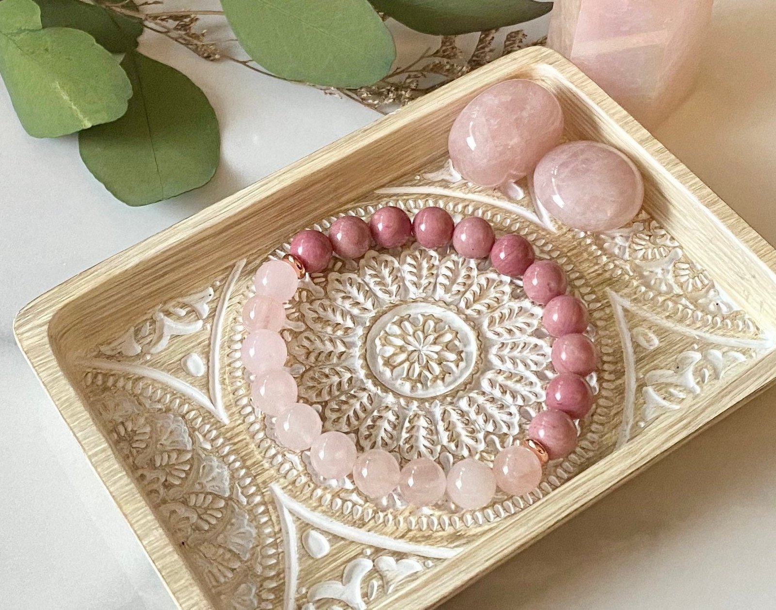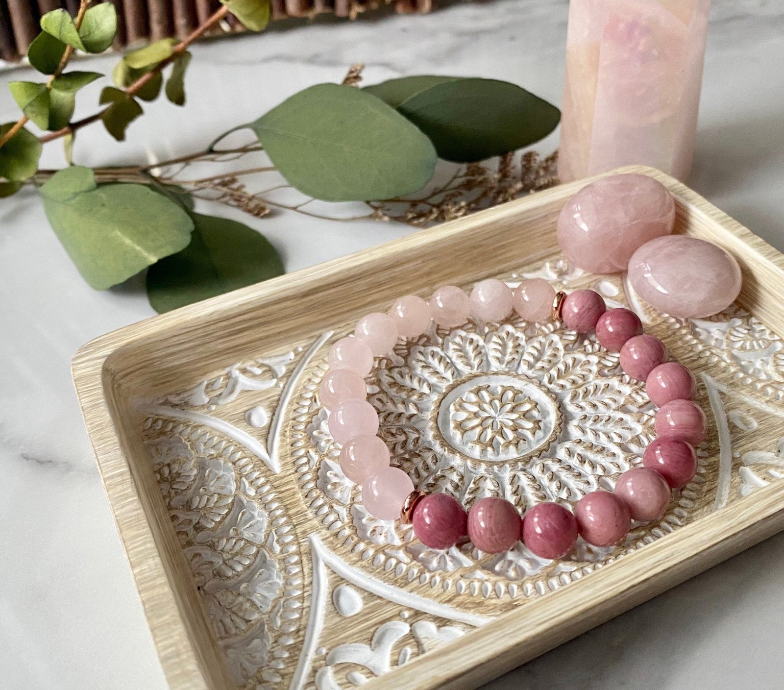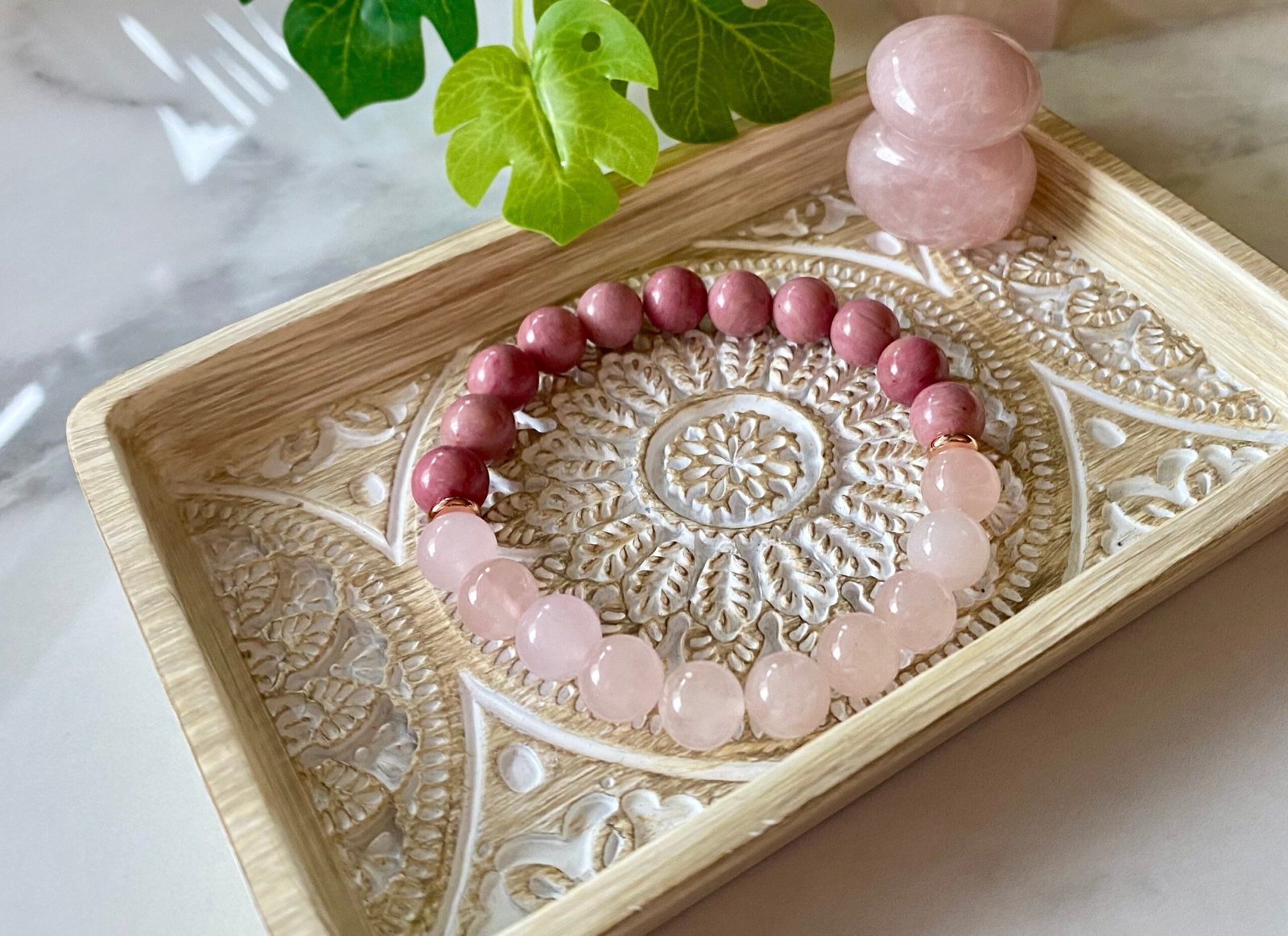 Genuine Gemstones – 8mm Rose Quartz & Rhodonite Bracelet