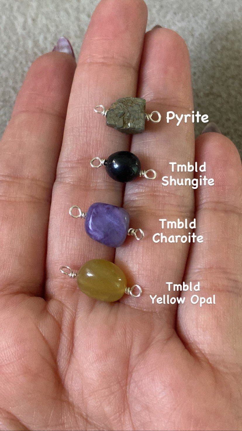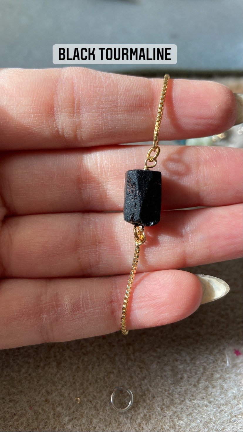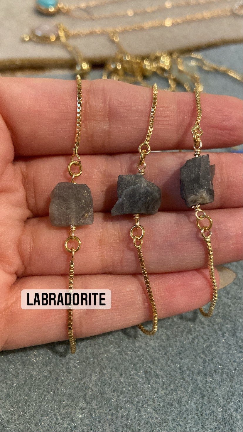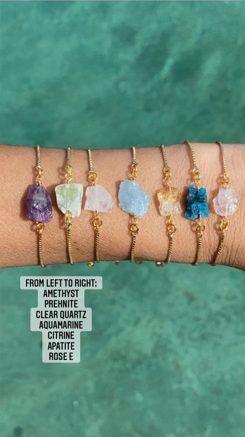 Handmade with plated brass and raw natural crystal beads.